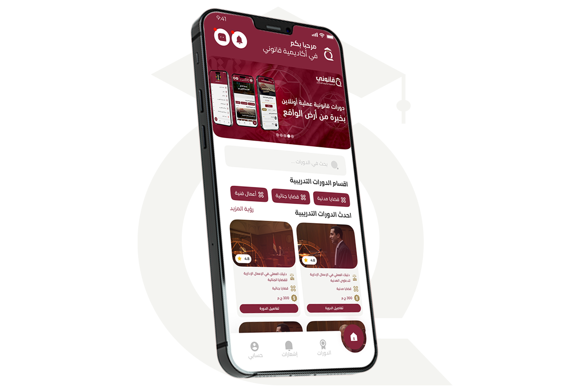 ابدأ رحلتك مع أكاديمية قانوني أكاديمي، حيث تجد أقوى دورات قانونية فى الوطن العربي ، مصممة خصيصا لتنمية مهاراتك وتطوير مسيرتك. تعلم بالسرعة التي تناسبك، تواصل مباشرة مع نخبة من خبراء القانون، وارتق بمستواك المهني من خلال جهازك بسهولة ويسر.
